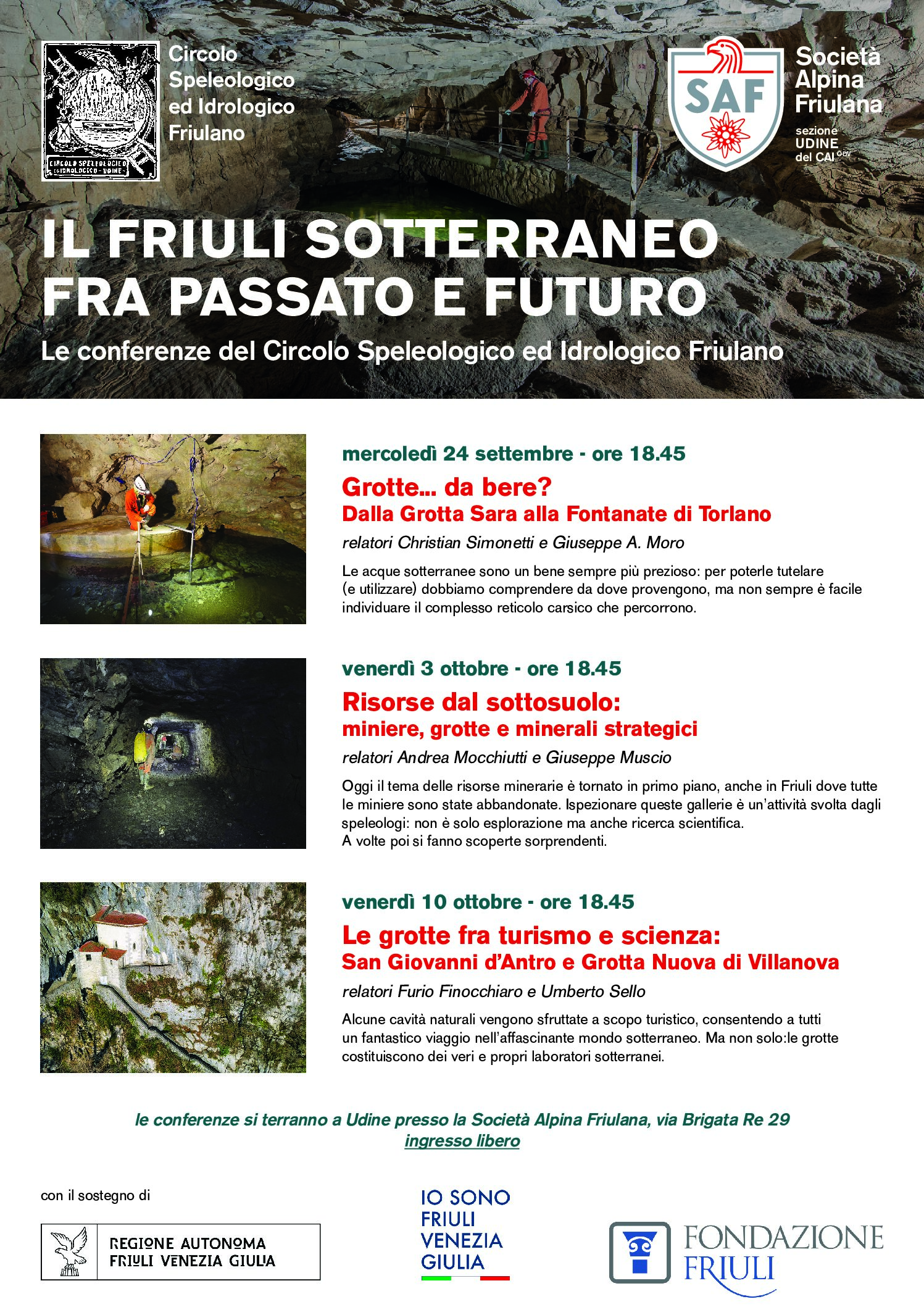 Le conferenze si terranno alla sede della Società Alpina Friulana A Udine, via Brigata Re 29