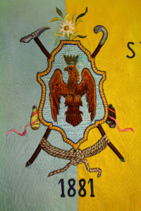 La prima, il Leontopodium alpinum, stella alpina o edelweiss, dall’Himalaya arriva nelle Alpi durante il susseguirsi dei cambiamenti geologici. Sconosciuta fino al 19° secolo, viene introdotta nel 1822 in Dictionnaire des Sciences Naturelles. Cresce dai 1500 ai 3000 metri e in Italia è presente solo sulle Alpi e dall’indicazione di questo areale deriva il suo nome. Concepita per sopravvivere a condizioni meteorologiche estreme di zone aride e calde, si è adattata alla montagna divenendo simbolo per eccellenza delle Alpi. Rappresenta il coraggio, la resistenza, la capacità di saper affrontare situazioni estreme nonché le alte cime. Spicca in testa allo stemma risultando talmente evidente da essere paragonabile a una stella celeste, assumendone il significato di guida sicura e di aspirazione a cose superiori. (…) La seconda, l’aquila con corona, è di foggia convenzionale per corpo e posizione del capo. In araldica è definita “nobilissima fra gli uccelli, si compiace delle sconfinate solitudini, il suo nido è inaccessibile sulle vette, simbolo di potenza, vittoria e prosperità”. Richiama l’aquila della bandiera storica del Friuli del 1334, il settimo vessillo più antico d’Europa, e quella della provincia di Udine, segnando un legame simbolico e figurativo con il Friuli. (…)